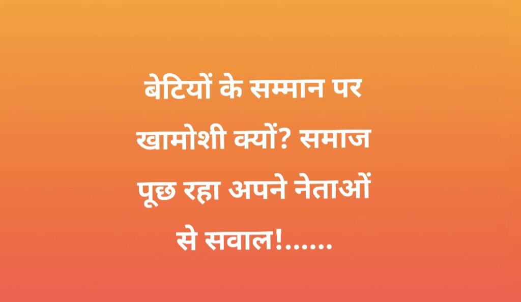 बेटियों के सम्मान पर खामोशी क्यों? समाज पूछ रहा अपने नेताओं से सवाल!……
