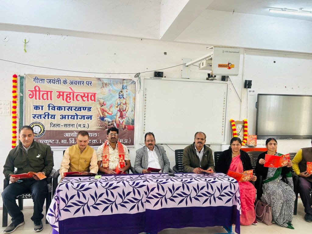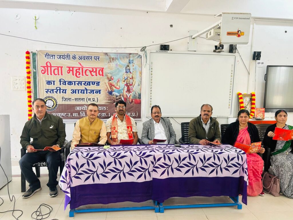 परशुराम कल्याण बोर्ड सतना, मध्यप्रदेश के अध्यक्ष विष्णु रजौलिया के मार्गदर्शन में गीता जयंती के अवसर पर पूरे प्रदेश में कार्यक्रमों की श्रृंखला जारी है। इसी क्रम में वेंकट क्रमांक-1 एक्सीलेंस विद्यालय में सोमवार को सामूहिक गीता ज्ञान का आयोजन किया गया, जहां विद्यार्थियों ने श्रीमद्भगवत गीता के 15वें अध्याय का अर्थ सहित सस्वर पाठ किया।