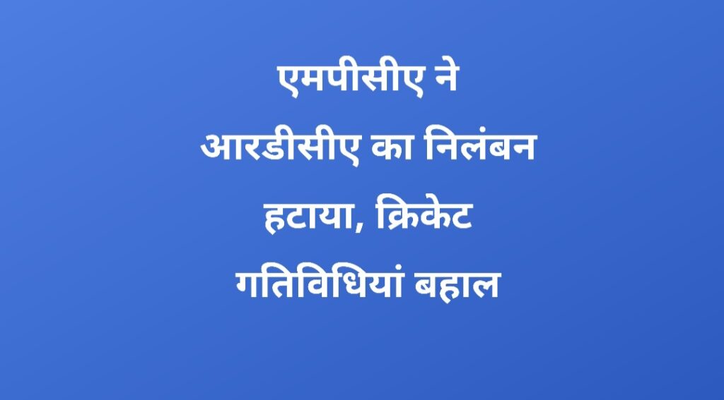 एमपीसीए ने आरडीसीए का निलंबन हटाया, क्रिकेट गतिविधियां बहाल…..